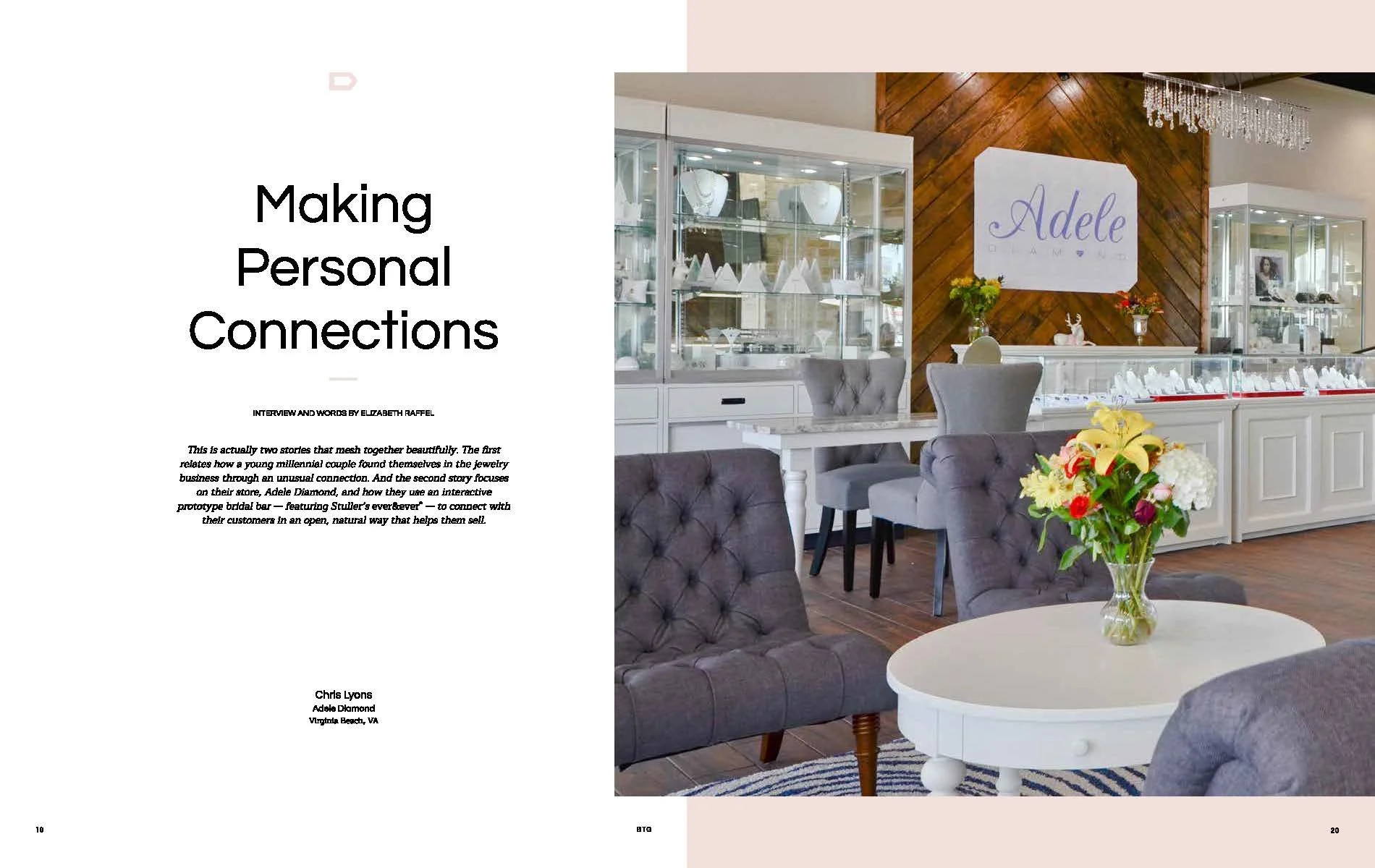 In Fall 2015, Adele Diamond opened in one of Virginia Beach’s high-traffic locations. Today, Chris and Ashley Lyons report that their business thrives as walk-ins and referrals abound, Its youthful owners and welcoming interior lend additional appeal.