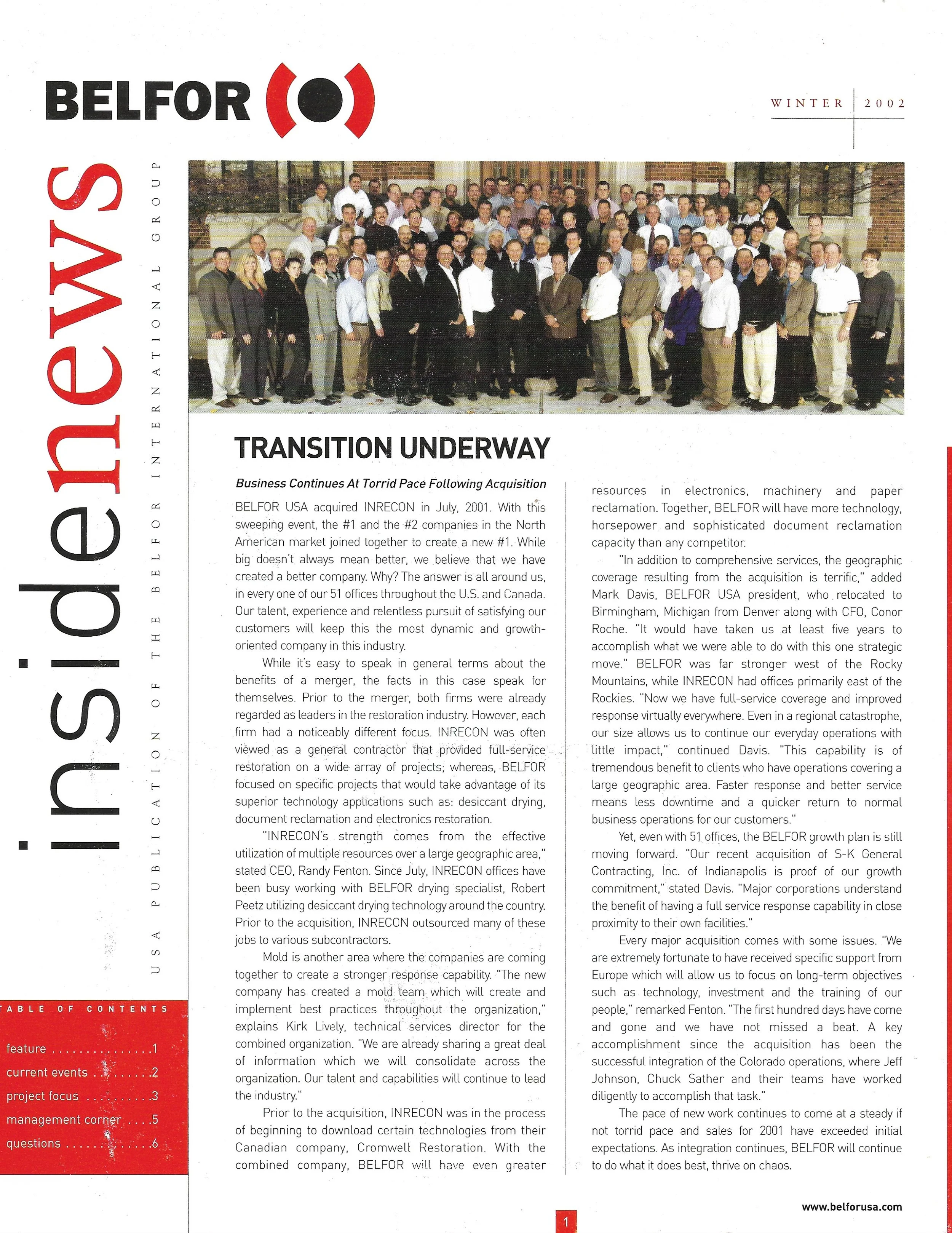 Belfor Inside News - Winter 2001