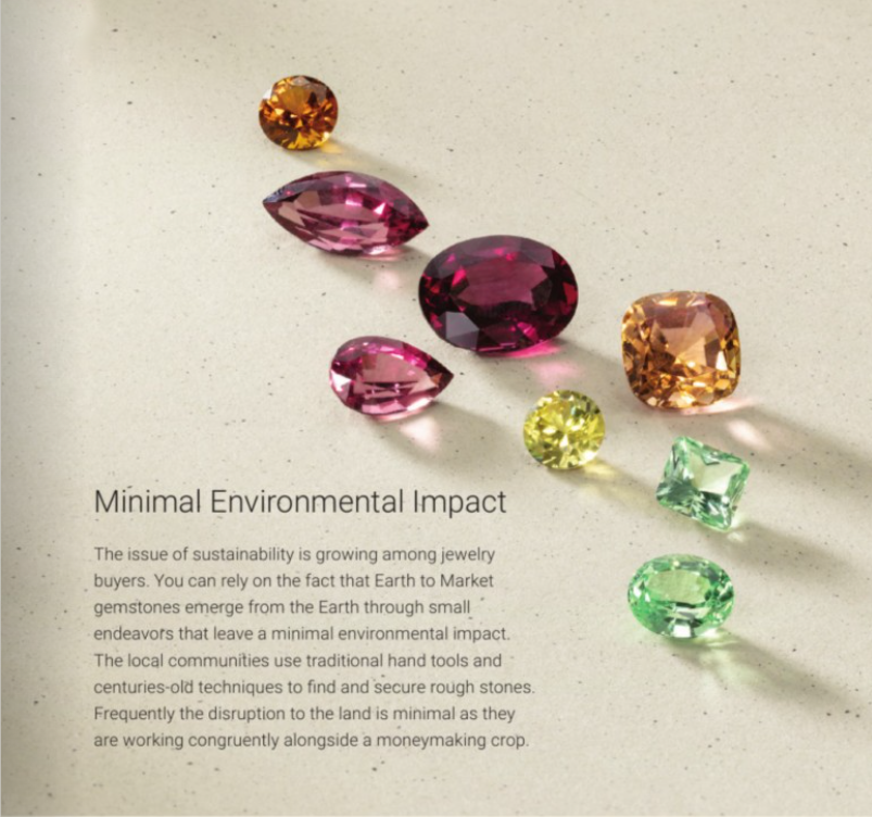 As our generations evolve, new questions are being asked, transparency in the process is starting to become as important as the stone itself. Historically, gemstones have passed through many hands before reaching the end consumer. Earth to Market™ gemstones are different because we purchase them closer to their source. In efforts to continually improve and provide transparency, we go to ever-increasing lengths to hold our suppliers accountable as we all work toward a sustainable business.